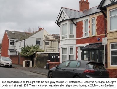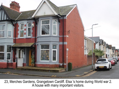 This is the author's home former home, 23 Merches Gardens, Cardiff. This where Elsa lived from 1934 until about 1948. This is the house that was struck by a bomb in early 1944. The unexploded bomb still lies under the kitchen floor.