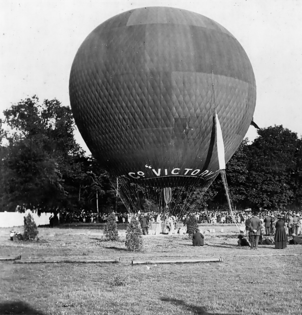 The balloon, owned by Ernest Willows, is named Victory obviously in honour of the Victory in the recent World War.