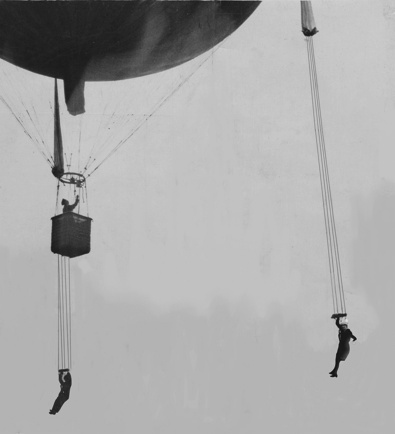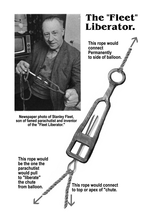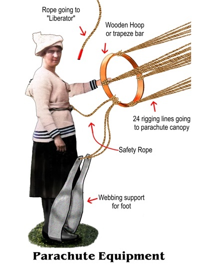This diagram better illustrates how the early parachutists were attached to the chute and the balloon.