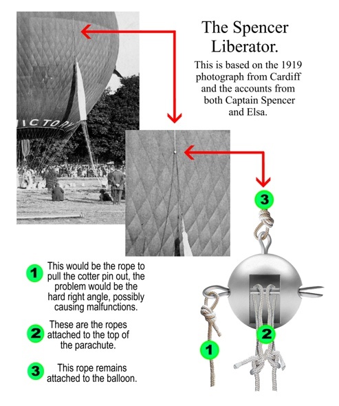 There is no actual close up photo of this device. If you look closely at the 1919 Cardiff photo you can just make out the liberator up above the apex of the chute.