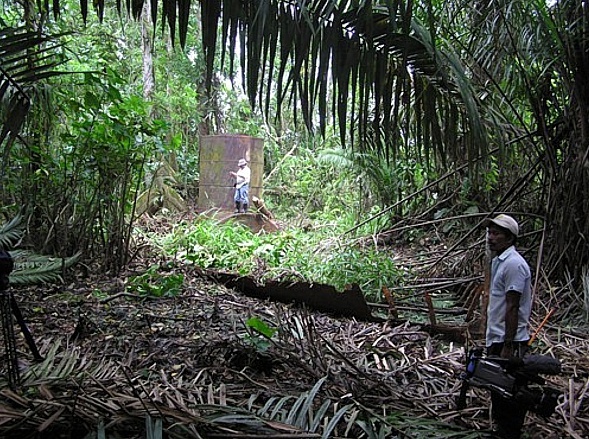 David Dell, along with translator Stephen Hunter and local businessman Alfonso Llanes, gathered together a group of local men and cleared away the jungle around the stricken vessel.