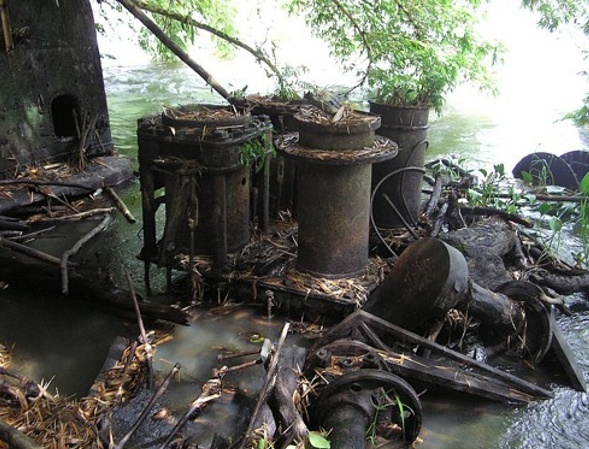 This vessel was exactly as Twain described , having an island grow around it. As you can see from the photographs it had enormous pistons and most of the ironwork was still remarkably intact given the nature of tropical river conditions.