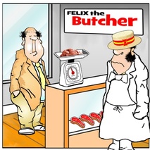 Have you ever gone to a butcher's shop and met a real "Bolshy" butcher? Oscar just wanted two pork chops.