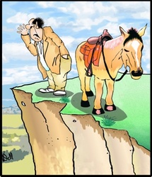 We all know what you are supposed to do when you fall of a horse. But what if you fall off a horse and fall over a cliff?